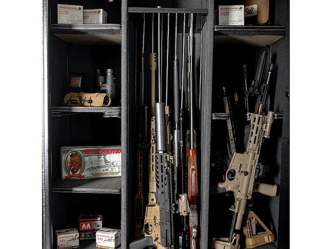 This model can secure multiple long guns, handguns, and valuable gear in one place.